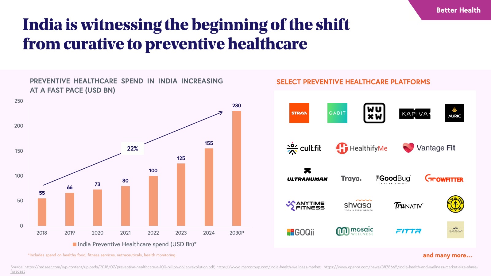 Another beneficiary of this wellness trend has been science-backed personal care products with brands like Minimalist, Innovist, Wishcare, and Deconstruct rapidly emerging. A similar movement is being seen in gut health with brands like The Good Bug and TruNativ emerging into mainstream retail. We expect to see many more such health and wellness-focused brands and platforms to emerge in the coming decade.