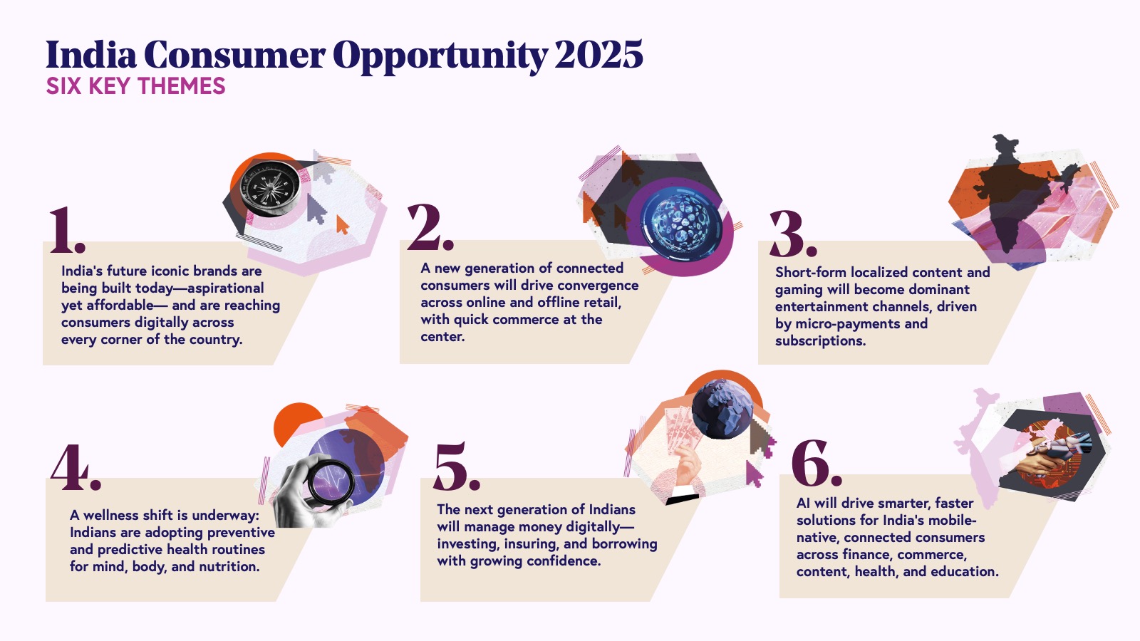 The next wave of digital growth will be powered by rapidly expanding online commerce (both e-commerce and ultra-fast "q-commerce"), a content revolution with explosive growth in short-form video, regional language platforms, and gaming, and increasingly discerning consumers, especially among India's younger population who demand aspirational, high-quality, and mass premium brands across every category.