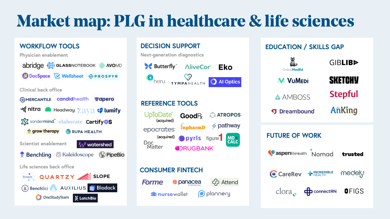 We’re on the cusp of a major shift in how healthcare and life sciences software is built and sold. Increasingly, individual workers such as clinicians and scientists are adopting consumer-grade technology through bottoms-up motions. Healthcare and life sciences tech companies are leveraging product-led growth strategies first pioneered by cloud giants.