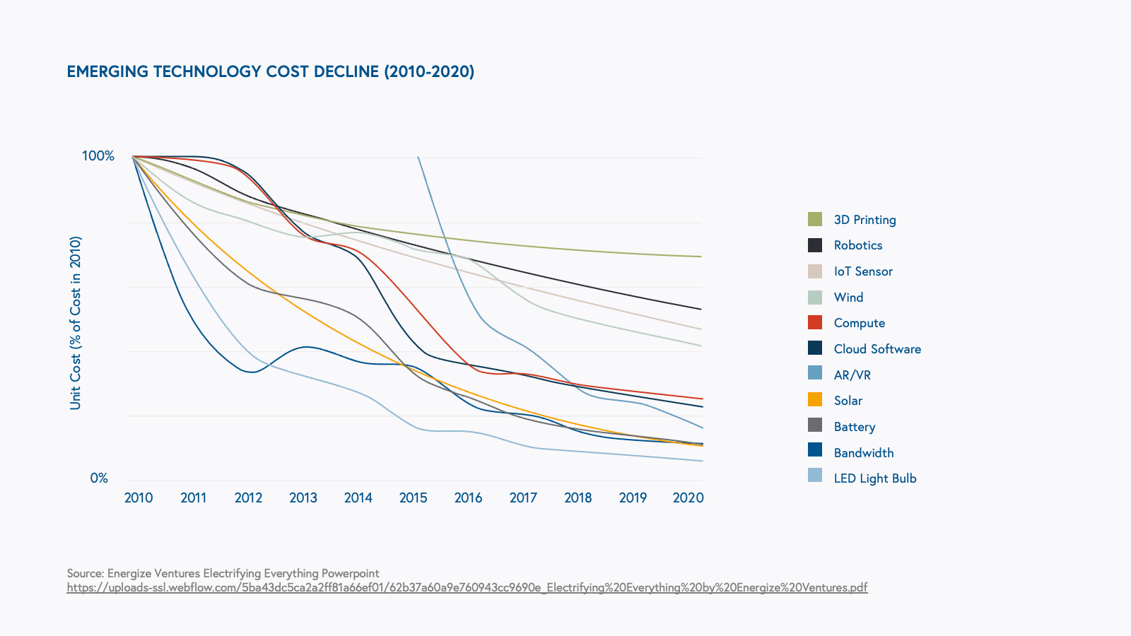 We believe that industry-wide investment bubbles and bursts, while painful in the short term, lay the foundation for long-term innovation. During the CleanTech 1.0 era from 2006-2011, billions of dollars in capital were plowed into climate startups, but many of those investments failed to pan out in the near term. Today, however, we’re reaping the benefits in unexpected ways. The price of solar and wind energy has plummeted and is a key driver of many new technologies today—like hydrogen production and batteries—that rely on cheap, renewable forms of energy.