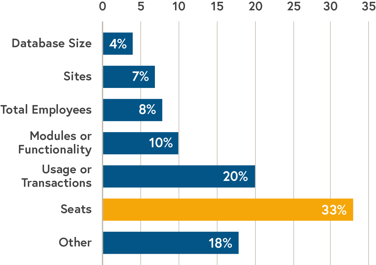 In 2011, almost half of all software companies charged per seat. By 2019, this number has decreased to 33%. There are now a plethora of new pricing options that allow companies to more closely capture the value they deliver.
