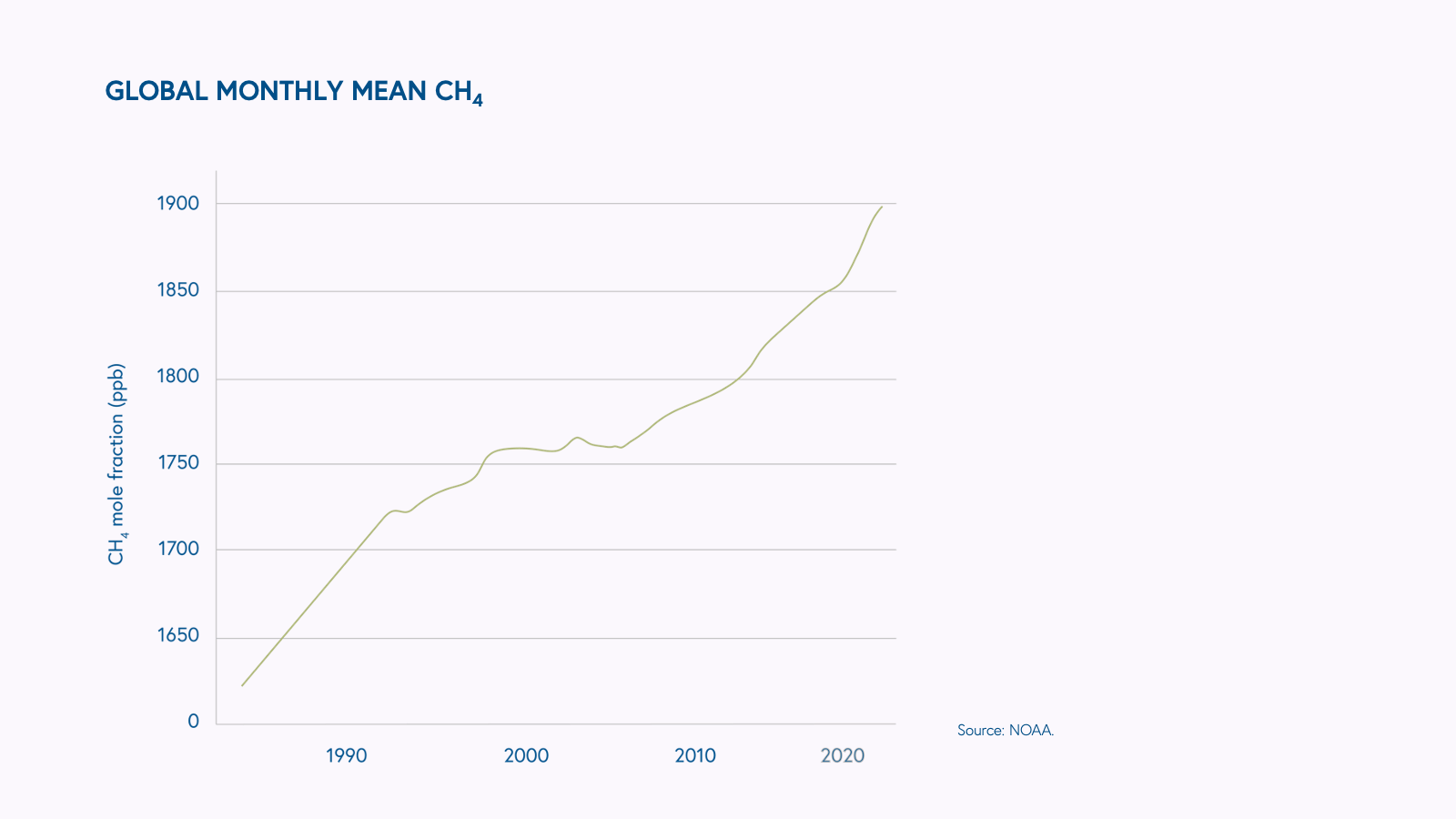 These tailwinds are important. As discussed, we need to buy time, and we have no time to waste. Methane has accounted for roughly 30% of global warming since the pre-industrial era and is entering the atmosphere faster than at any other time since we began keeping track in the late 1900s. In fact, according to data from the United States National Oceanic and Atmospheric Administration (NOAA), even as carbon dioxide emissions decelerated during the 2020 lockdowns, methane emissions continued to accelerate.