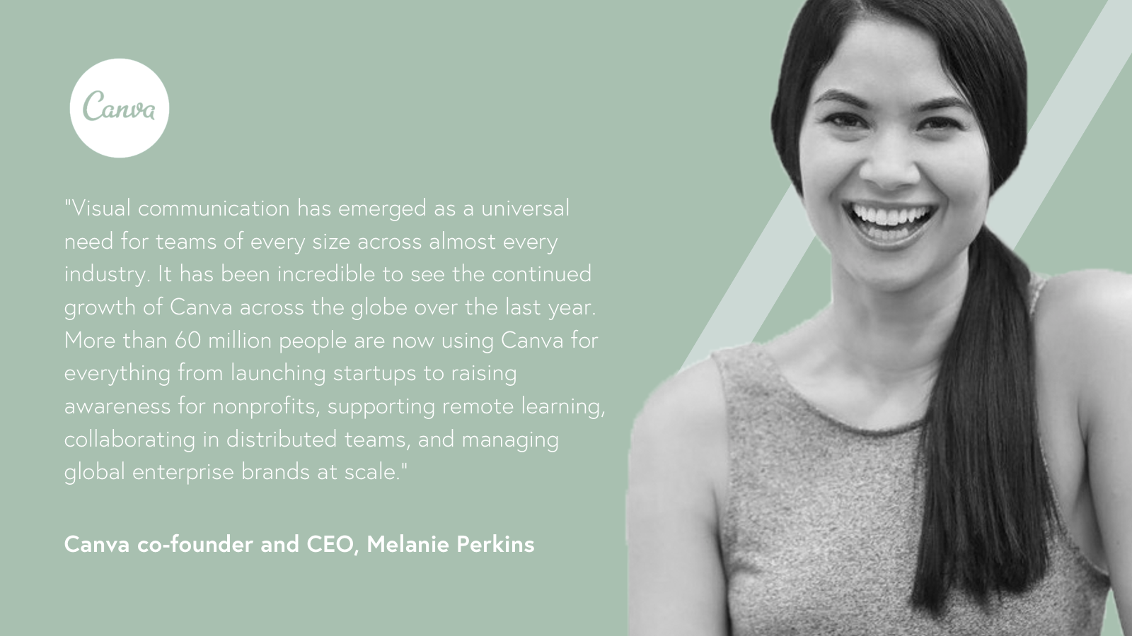 Fast forward a few short years, Canva is now the most valuable female-led startup in the world, and is on track to exceed $1 billion ARR by the end of 2021 at breakneck speed while generating positive free cash flows. The Canva community has created more than 7 billion designs, with 120 new designs created every second using the platform’s expansive library of more than 800,000 templates and over 100 million design ingredients including graphics and audio tracks.