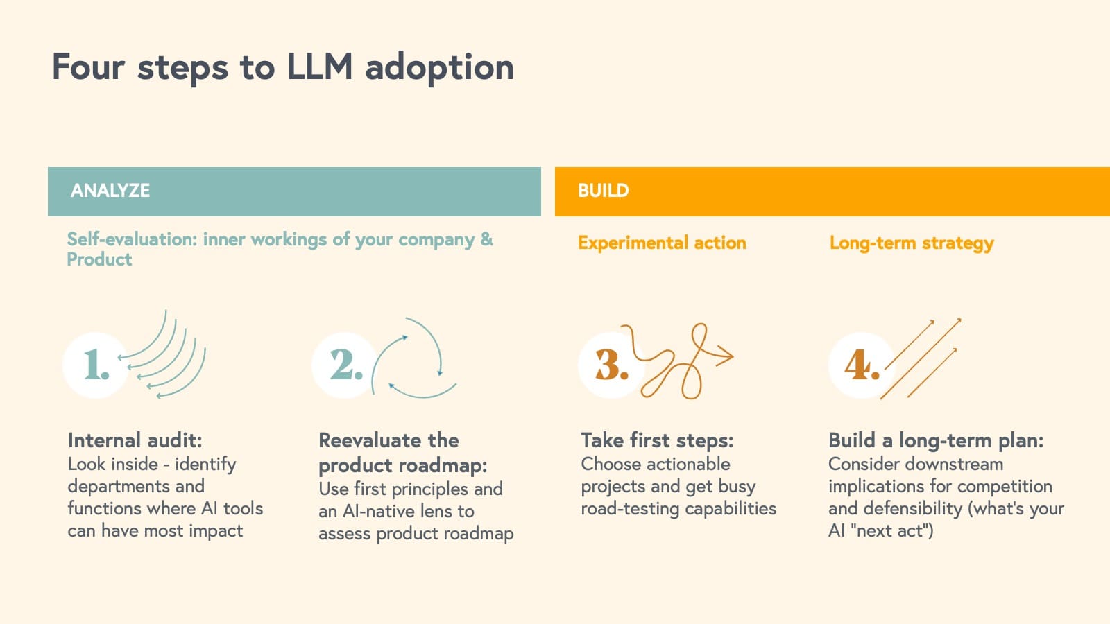 Here are some immediate tactics you can take to start integrating AI and LLMs into your business: