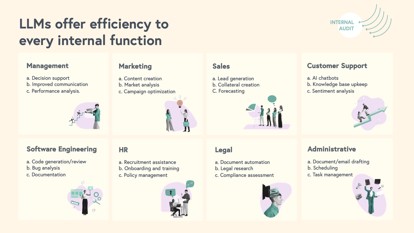• Give every employee access to LLMs and share best practices for using them effectively.