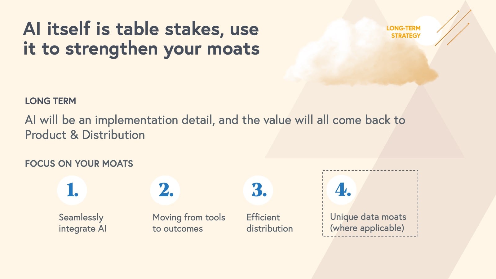 4. Start your AI strategy today and once to market, focus on long-term defensibility