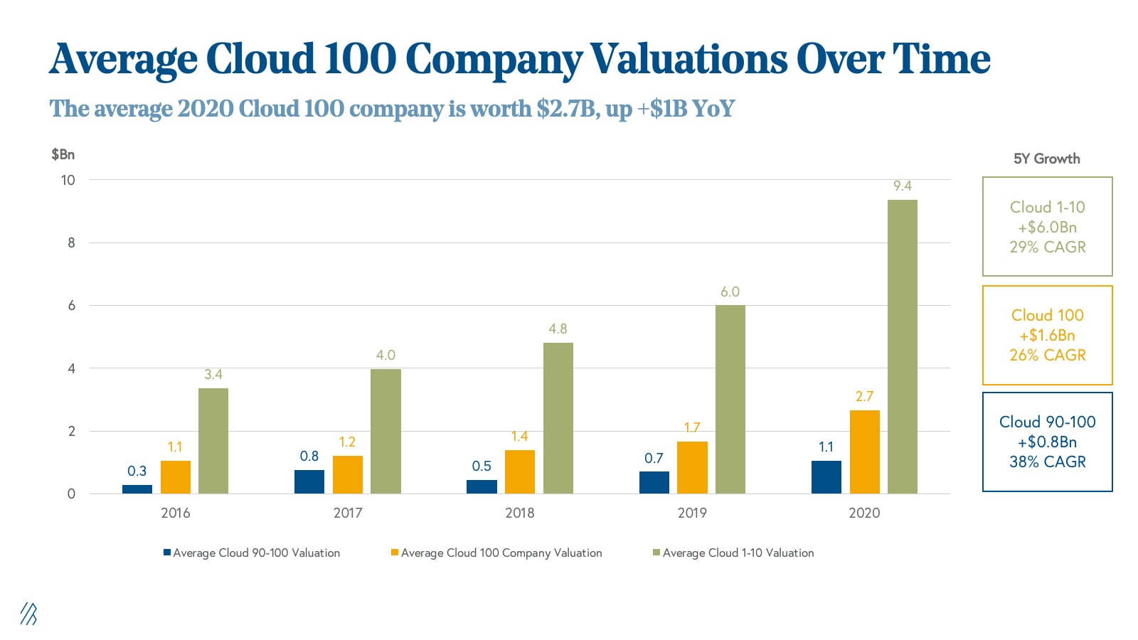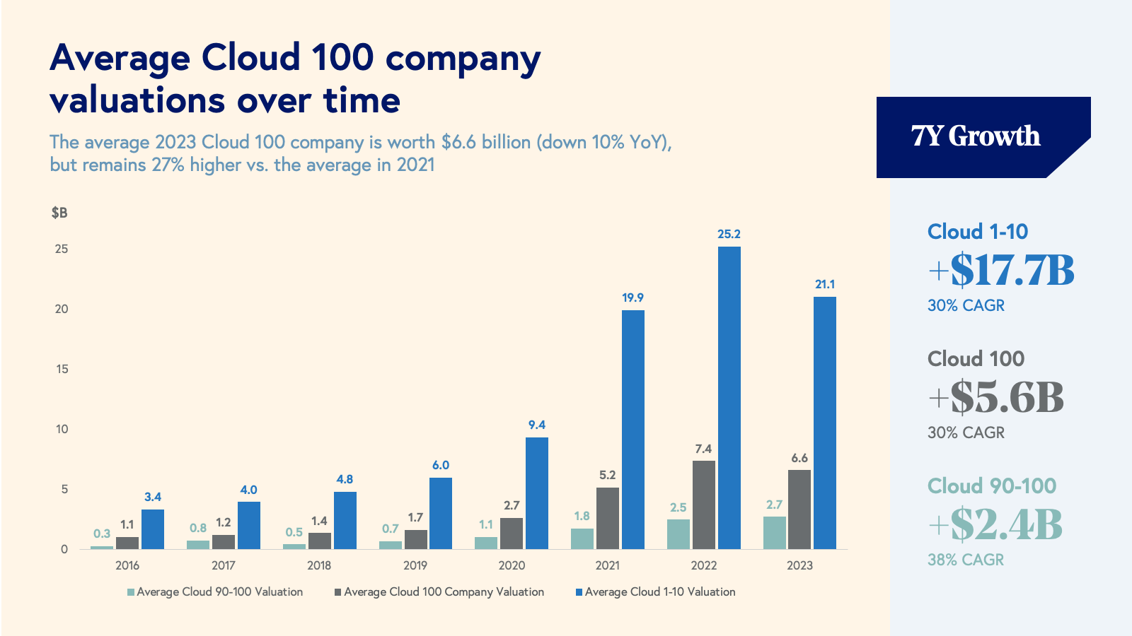 The average Cloud 100 valuation grew by $1 billion year-over-year