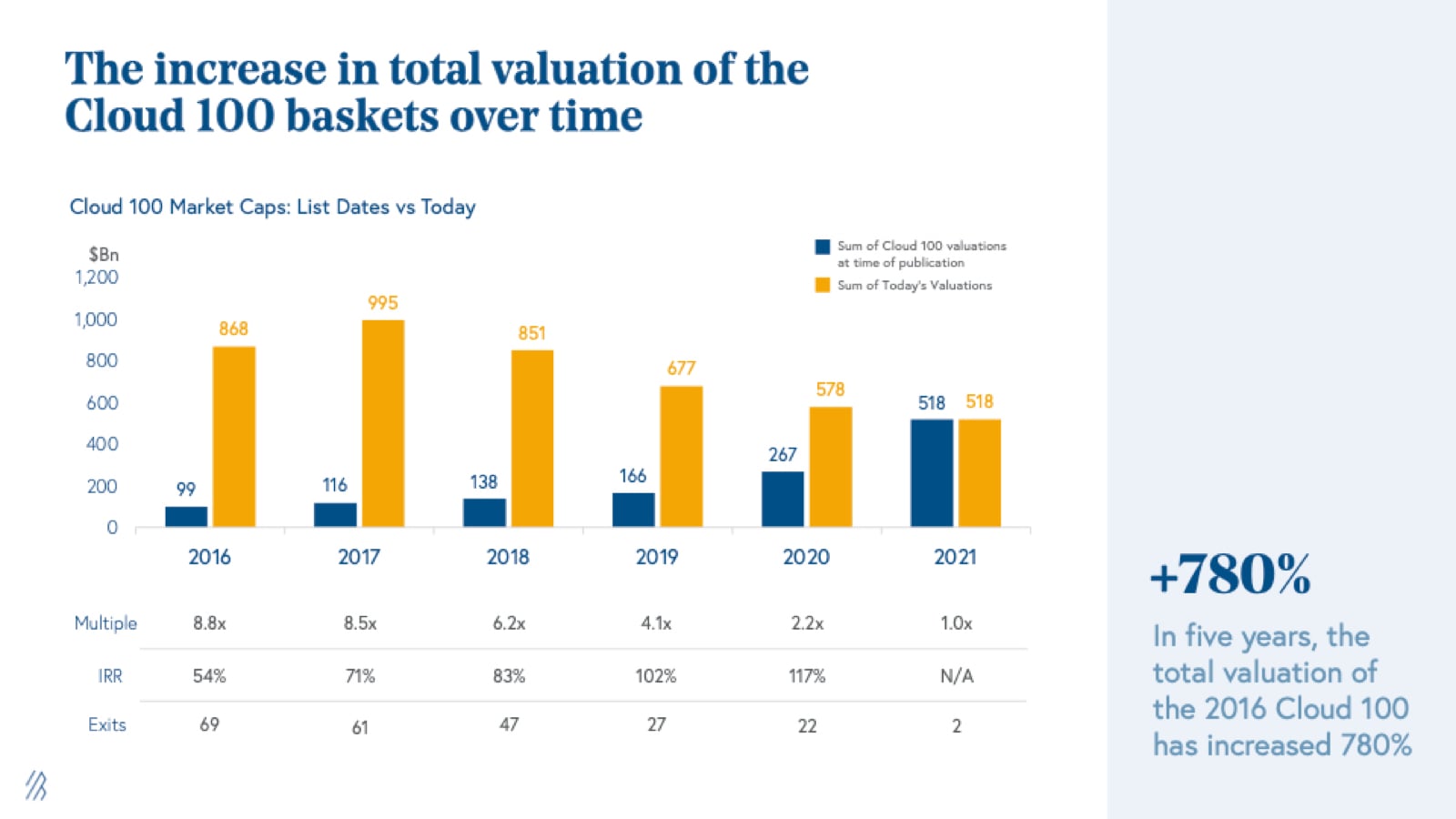Cloud 100 returns: +780% increase in valuation since 2016