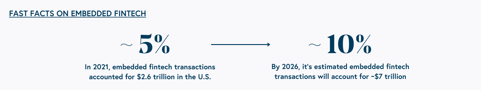 - Faster payments. Businesses everywhere will begin to adopt faster payments given increasing working capital needs paired with the launch of FedNow and other government backed initiatives. The rise of real-time payments and settlements will significantly impact supply chains, financial institutions, and consumers. We expect infrastructure providers to help institutions connect, manage workflow, and address fraud—especially authorized push payments.