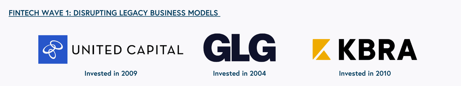 We saw another example of business model reinvention when The Great Recession in 2008 exposed other vulnerabilities in existing business models. Consumer confidence in the major brokerage houses was in decline when we invested in United Capital in 2009. We believed that the independent Registered Investment Advisors' assets under management (AUM) model better-aligned advisor and consumer incentives and that consumers would shift wallet share away from wirehouses. (Wirehouses' commission revenue incentivized fees from more trades and the marketing of in-house products.) The United Capital platform leveraged centralized technology and operations to deliver this vision with an incentive structure that was a win-win for the advisor and client.