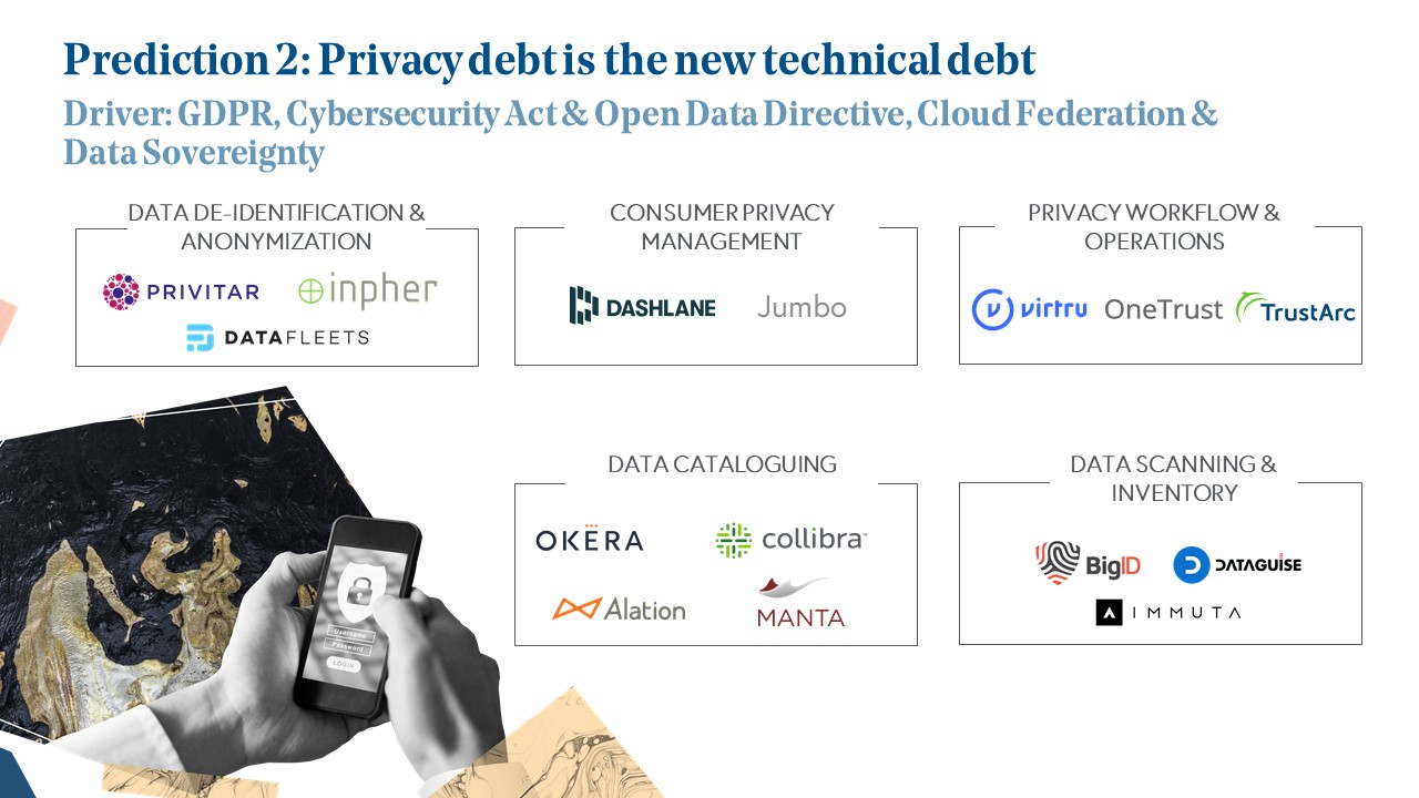 At Bessemer, we’ve already invested behind this prediction with companies like MANTA, the data lineage leader, BigID in the data scanning and inventory space, as well as consumer privacy protection tools like Dashlane, a company that was originally founded in France.
