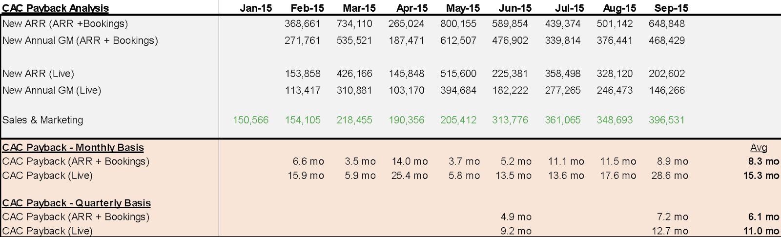 CAC payback is somewhat lumpy month to month, in particular as larger restaurant groups come online, but the overall picture shows a payback of 8 months assuming no backlog. While there will always be some delay in getting sites online, we believe this will significantly improve after this round of financing, and look at CAC payback from booking as an accurate indicator of the efficiency of the sales model. Below is an analysis of CAC payback in 2015.