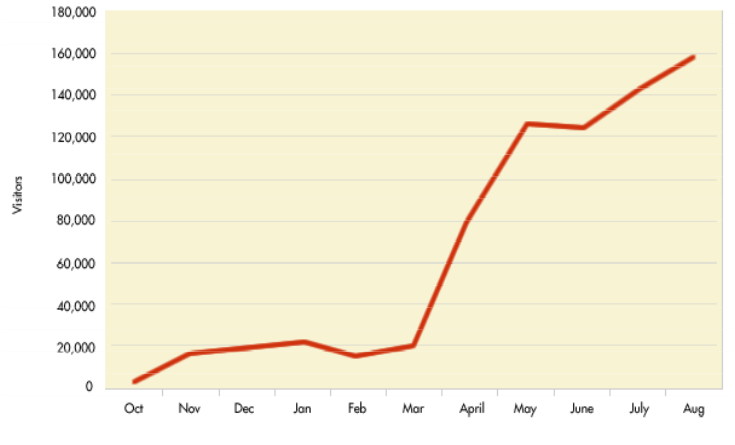 It is still early, but it also appears that Yelp’s user base is quite loyal. The graph below shows an increasing number of consumers are frequenting the site more often each month.