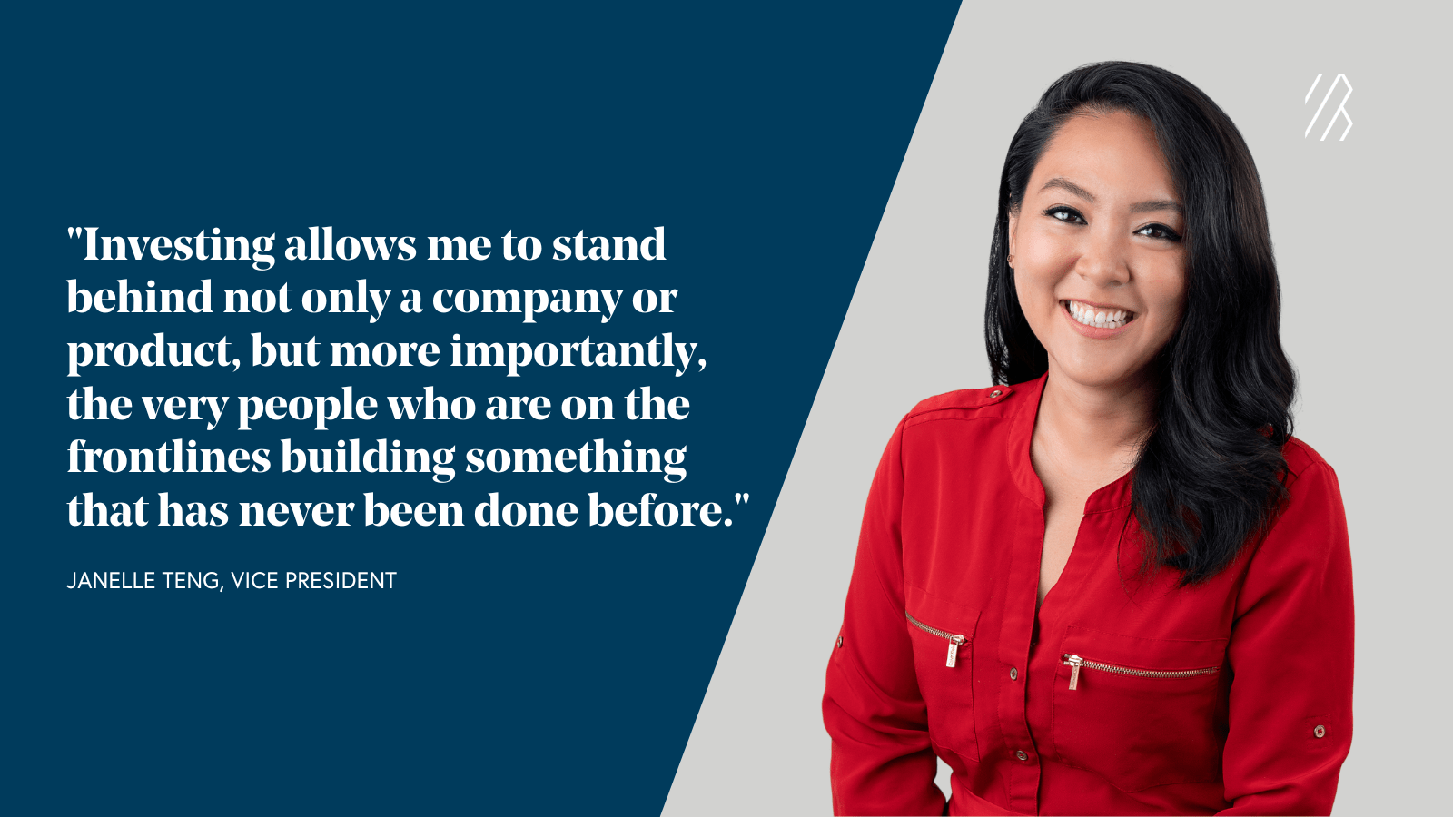 “Working closely with entrepreneurs is what matters the most to me. Whether it’s helping companies to understand metrics and benchmarks as they scale, or supporting hiring efforts and offering resources to cultivate inspiring places to work, serving the needs of a founder throughout their startup journey (and seeing that growth over time) is what’s most rewarding,” says Janelle. “Investing allows me to stand behind not only a company or product, but more importantly, the very people who are on the frontlines building something that has never been done before.”