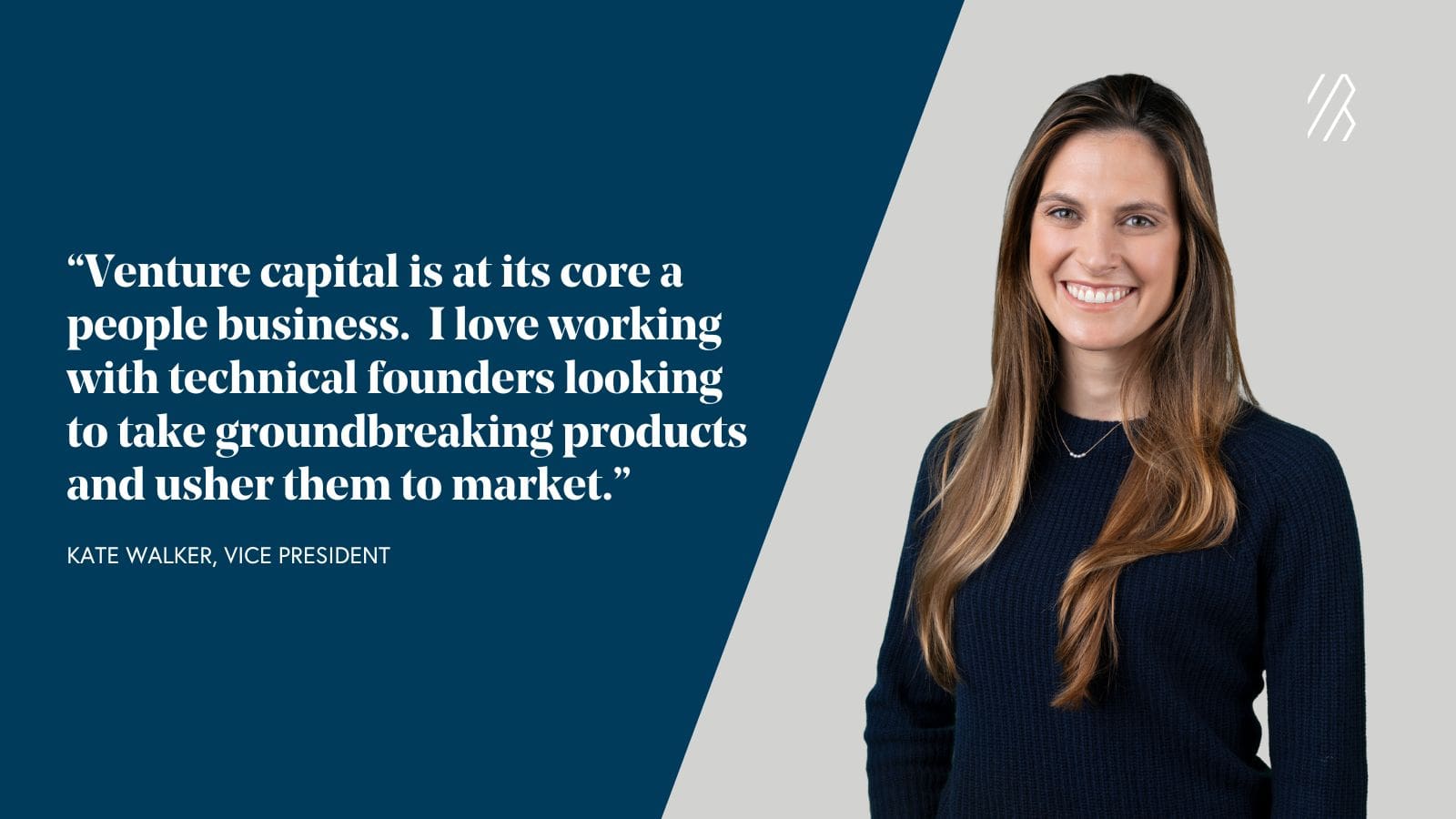 “Venture capital is at its core a people business. I’m fortunate to spend my days meeting with entrepreneurs that are at the forefront of technological innovation,” said Kate. “As an engineer by training, I love working with technical founders looking to take groundbreaking products and usher them to market.”