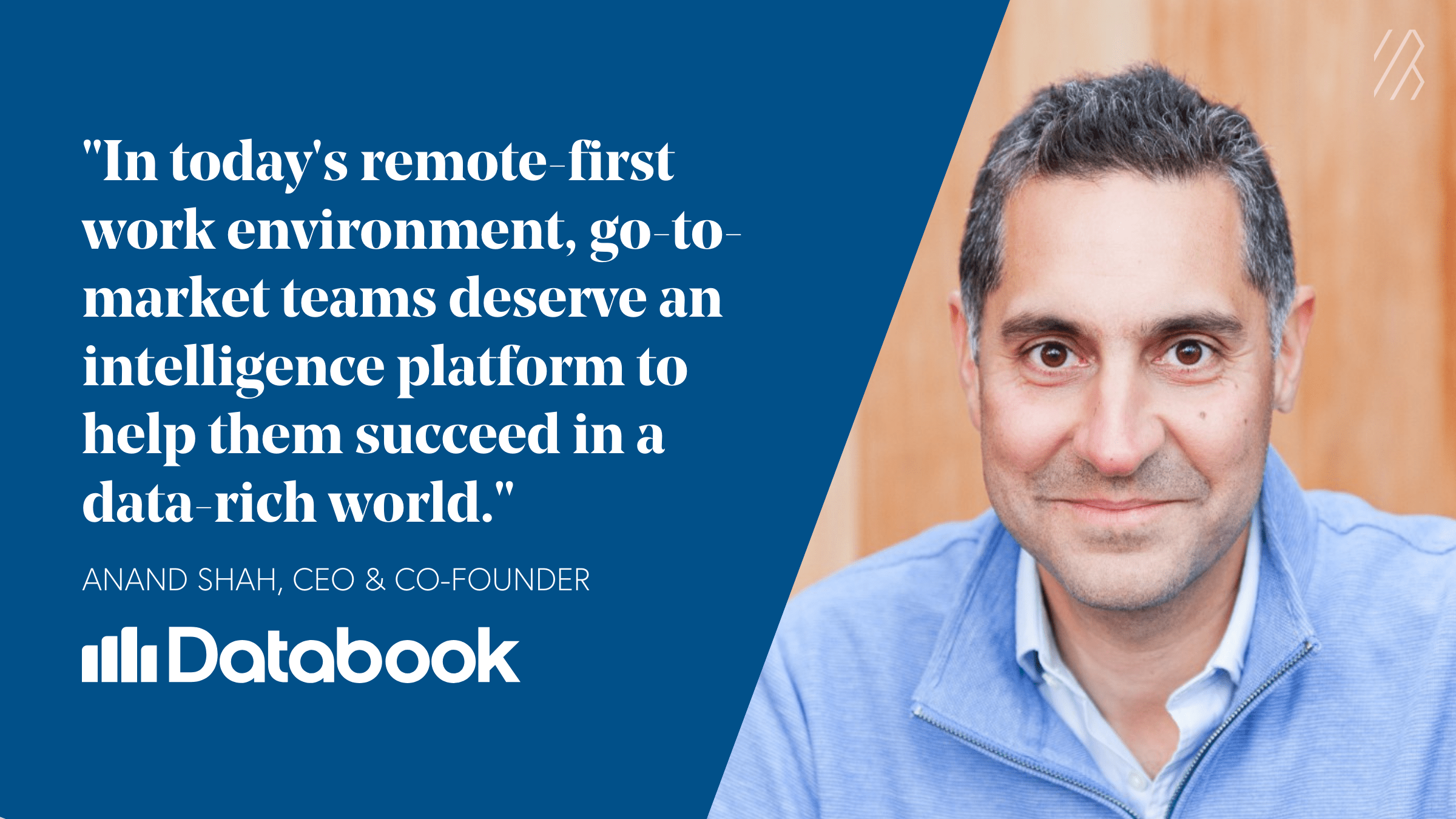 When we met Databook’s CEO Anand Shah and heard him articulate the Databook vision, it immediately became clear to us why they’ve captured mindshare at several of the world’s best B2B companies. We were blown away by Anand’s ability to combine a highly data-driven approach, a striking ability to dictate product direction, and a high degree of customer empathy. In a previous career as a consultant advising the world’s largest tech companies, Anand witnessed firsthand how GTM teams could not fulfill their full potential as they were not equipped with effective sales enablement tools. This served as his inspiration to start Databook with the ultimate goal of helping enterprise GTM teams hit peak performance, and helping individual reps sell at their best, deal after deal.